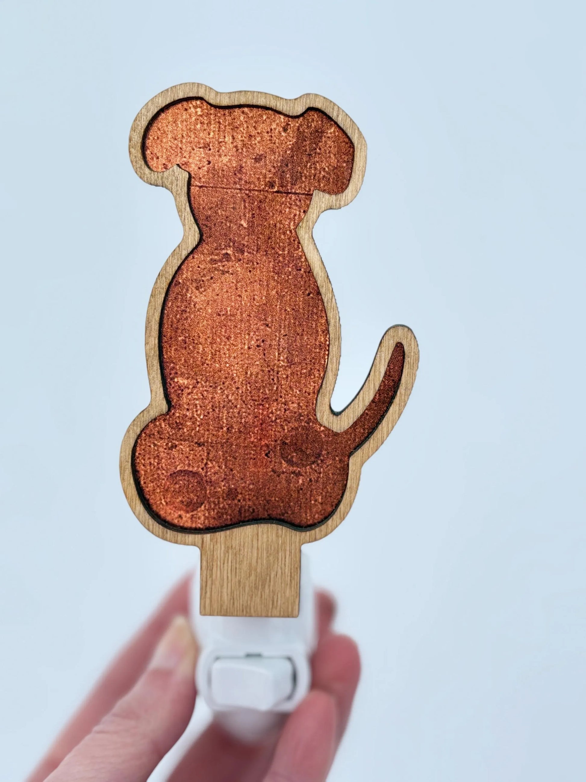 Light up your home with the loyal charm of our Dog Silhouette LED Night Light, handcrafted in rural Minnesota at Midwest Hobby House. This beautifully detailed plug-in night light features a striking dog silhouette that casts a cozy, comforting glow—perfect for hallways, bedrooms, entryways, or any spot that could use a touch of warmth and personality.