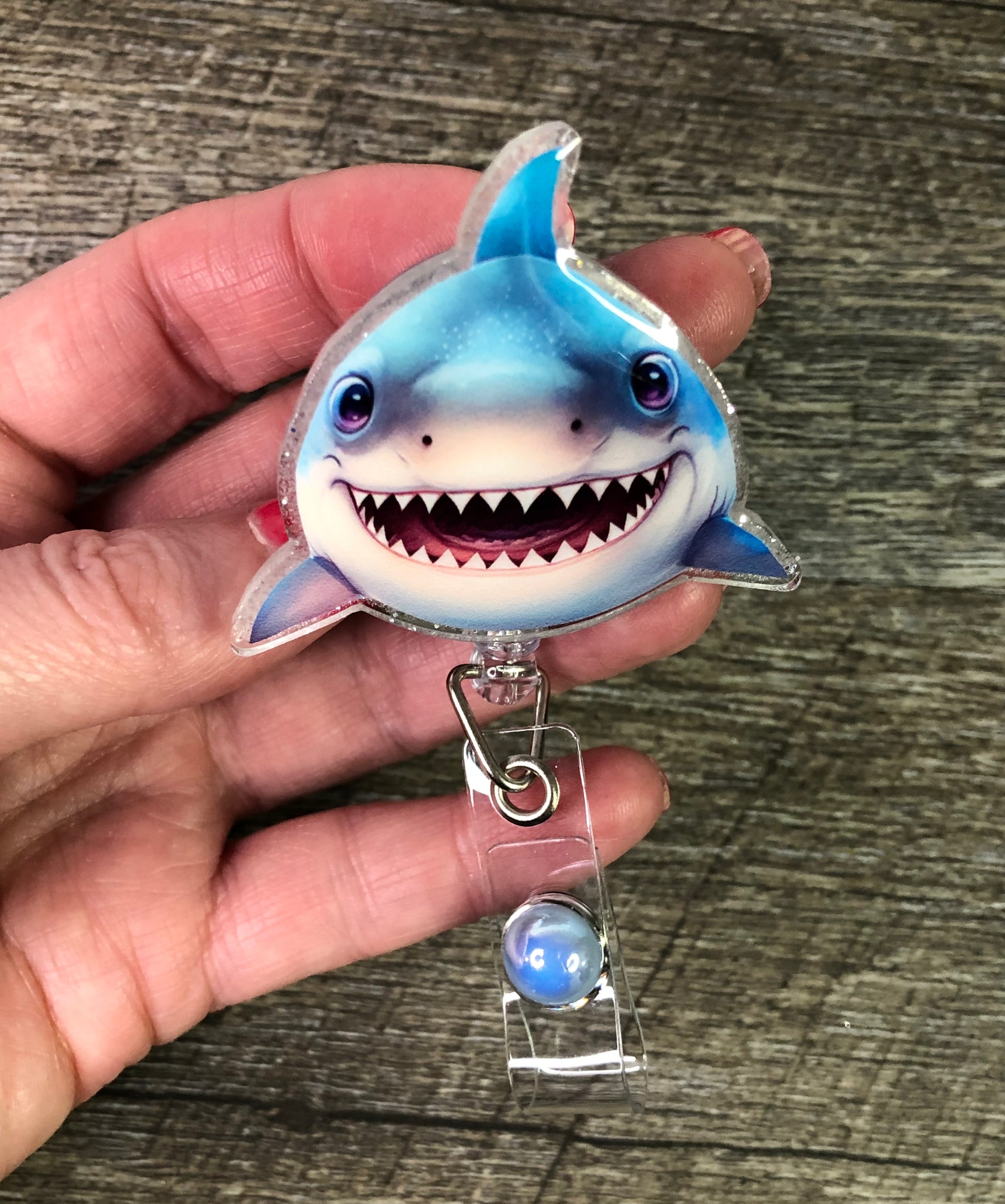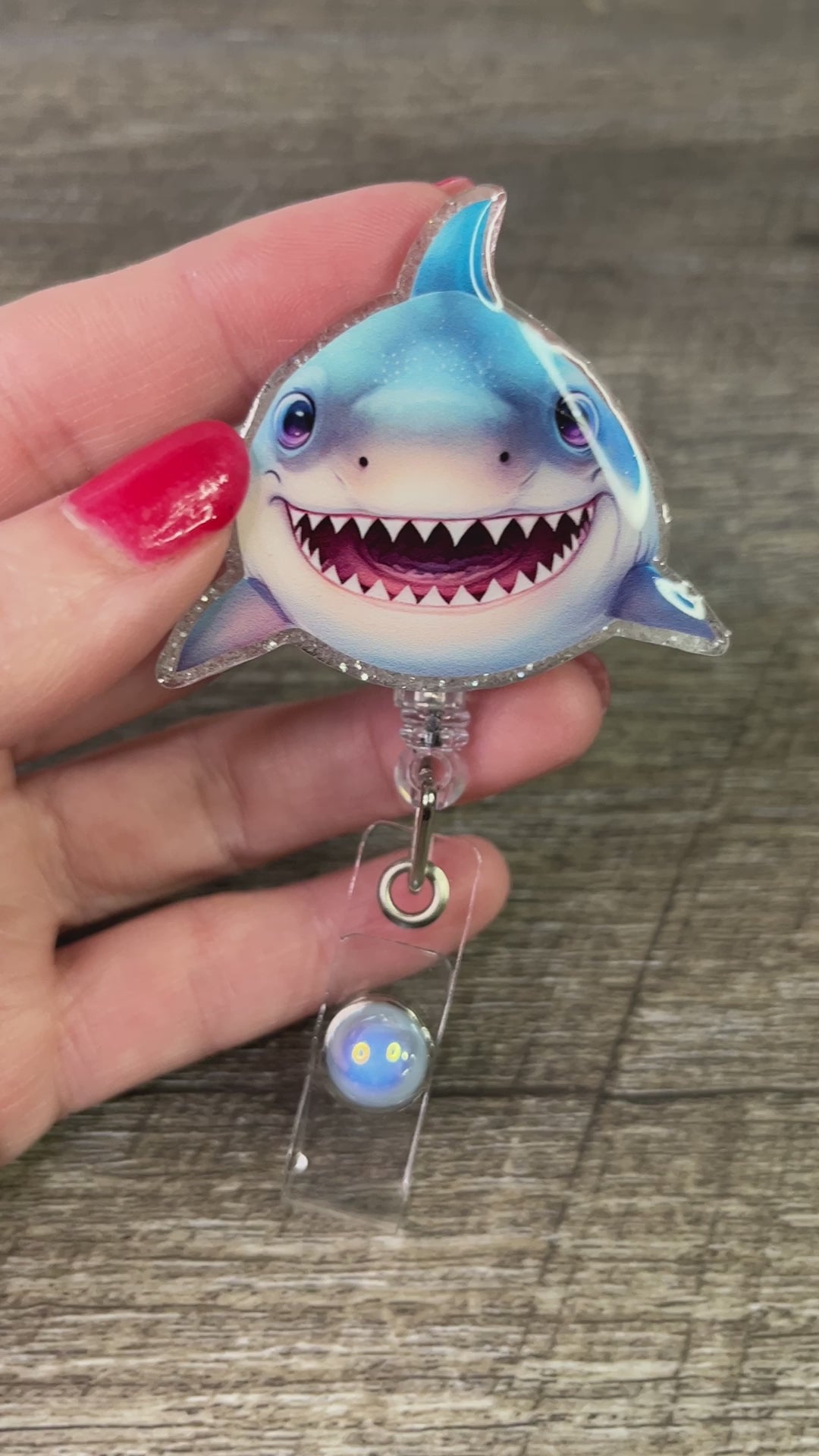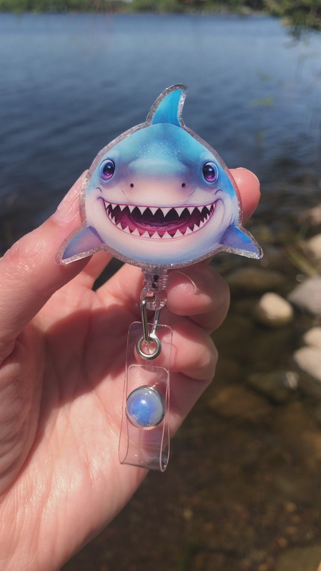 Dive into your workday with the Shark Badge Reel, a fun and functional accessory featuring a friendly cartoon shark design! Perfect for holding your photo ID, this retractable badge reel brings a splash of personality to your daily routine.
