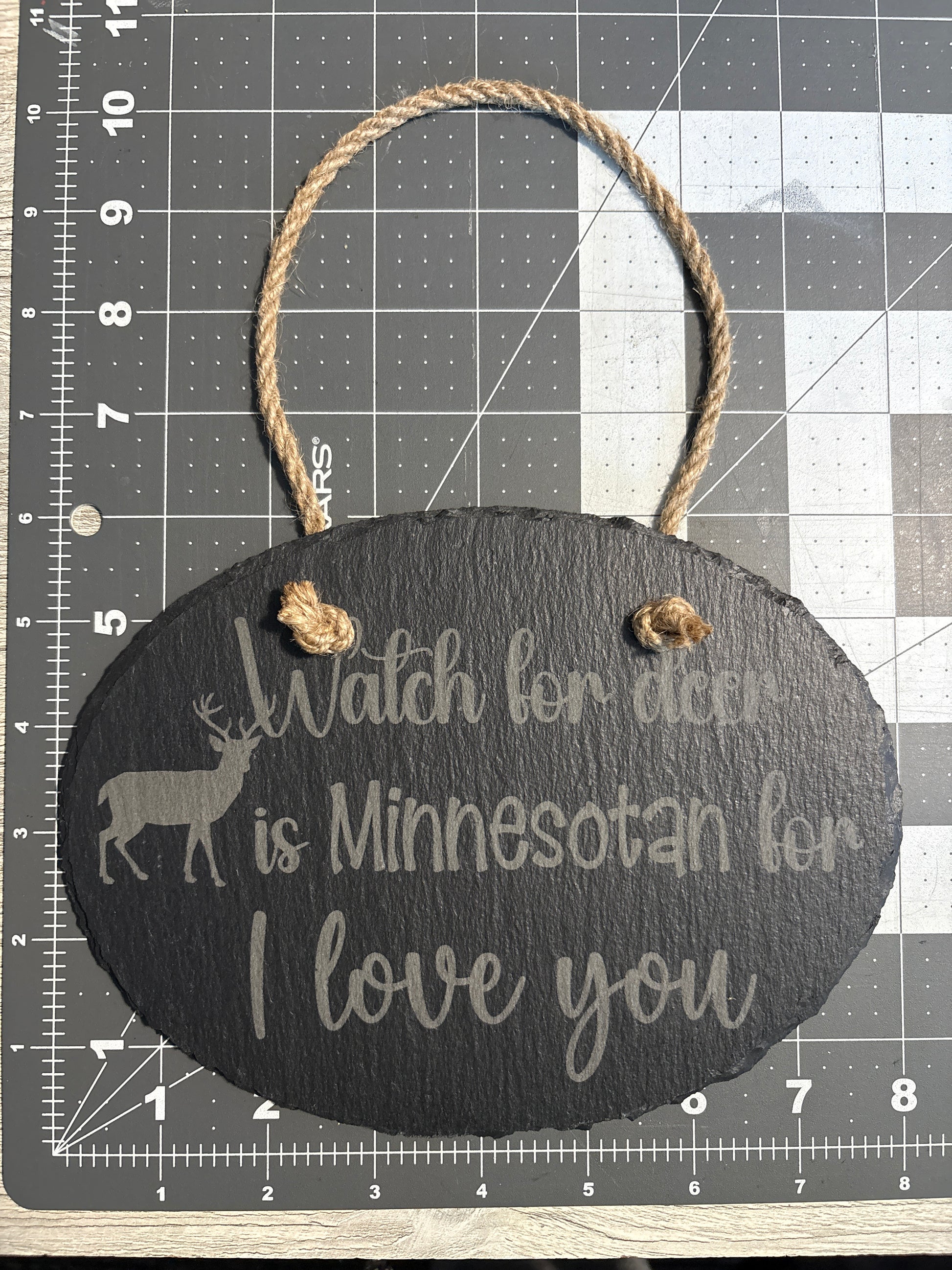 Engraved Slate Wall Hanging – “Watch for Deer is Minnesotan for I Love You” | Minnesota Gift | Rustic Cabin Décor